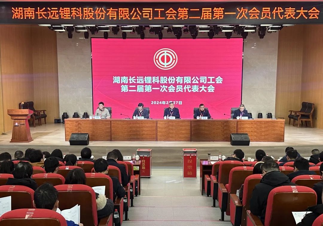 2月27日,长远锂科工会第二届第一次会员代表大会在高新基地隆重召开。党委书记、董事长胡柳泉出席会议并讲话。公司其他在家领导班子成员出席会议。公司各部门、各业务中心及两家子公司共89名正式代表、20余名特邀代表参加会议。