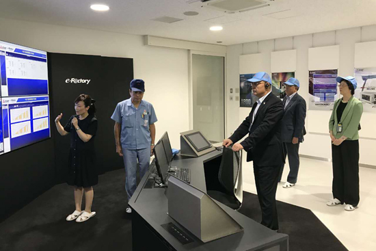 On September 28, accompanied by Shunichi Matsui, Kosaku Kawai Man Jiang, and other personnel from Mitsubishi Corporation, He Wenbo and his delegation paid a visit to e-Factory, a demonstration plant of Mitsubishi Electric Nagoya Works. The delegation expressed their admiration for the achievements of Mitsubishi Electric in constantly optimizing the workflow and layout of the workshop through equipment operational data and in enhancing lean manufacturing efficiency and flexibility manufacturing capacity in factory automation as well as a series of shock absorption measures for buildings.