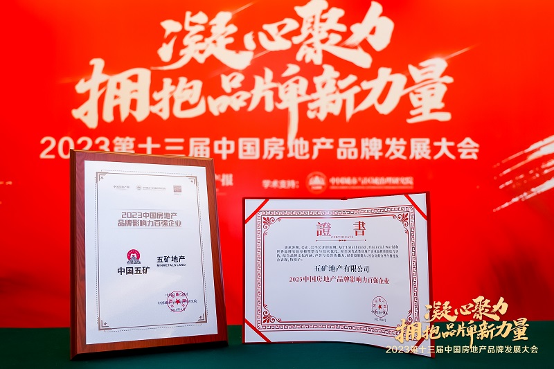 五矿地产荣获“2023中国房地产品牌影响力百强企业”