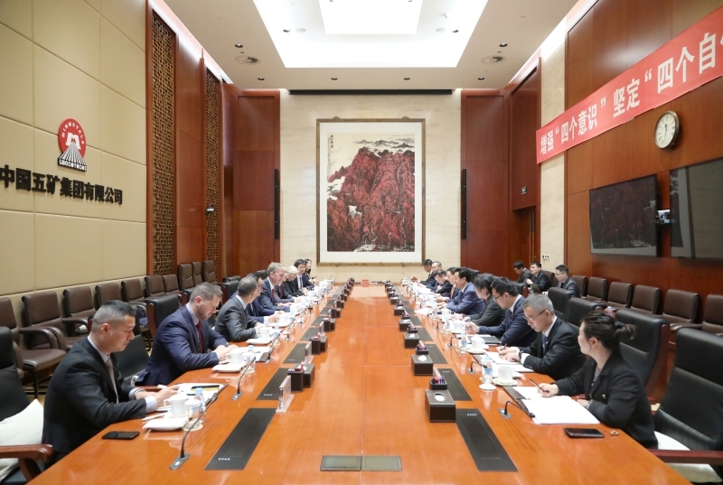 陈得信欢迎石道成一行到访进行工作交流,对力拓集团近年来取得的经营业绩,特别是前不久宣布完成对阿卡迪姆锂业的收购表示祝贺。他说,今年是中国五矿与力拓集团开展合作的第52个年头。50余年来,双方始终秉持互利共赢原则,在铁矿石贸易、选矿混矿、资源勘探和工程建设等多个领域开展了深入合作,合作体量和层次得到了长足发展和显著提升。面向未来,希望双方强化交流对接,建立定期沟通机制,充分发挥各自优势,围绕“资源+技术+服务”进一步提升铁矿石贸易合作水平,围绕“科技+施工+项目”拓展矿山设计开发和建设运营领域合作深度,通过优选找矿靶区共同加大地质找矿力度,同步积极挖掘锂资源方面合作空间,不断推动双方全方位、体系化合作持续深化。