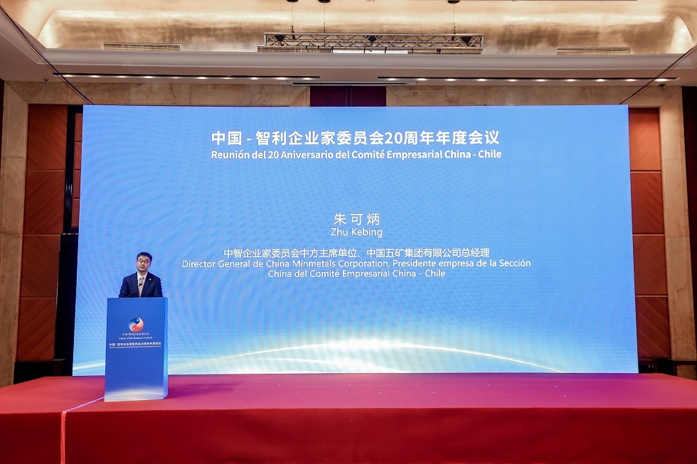 朱可炳在致辞中回顾了中国-智利企业家委员会20年来创办、变革和发展历程。他表示,委员会将全面贯彻落实两国元首会晤精神,制定双方的具体工作目标和计划,发挥平台服务作用,进一步促进两国企业务实精诚合作。中国五矿作为中智企业家委员会的创始发起方和中方主席单位,也是参与中智经贸合作最早的企业之一,将更加积极发挥自身优势,与智利企业在地质勘探、矿山开发、冶炼加工、贸易物流、新材料、科技创新等领域密切沟通、深化合作,不断创造互利共赢新成果。