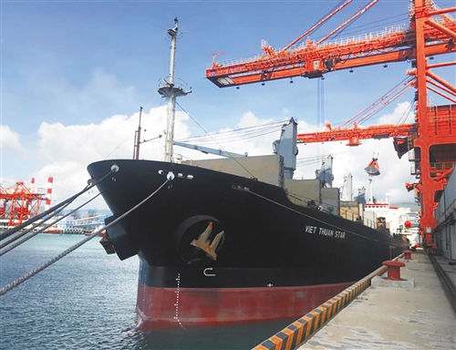 左图 越南永新燃煤电厂一期运煤码头正在紧张作业。本报记者 崔玮祎摄