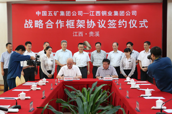 9月23日,中国五矿集团公司与江西铜业集团公司在江西贵溪签署战略合作框架协议。中国五矿董事长何文波、江铜集团董事长李保民代表双方签署协议并致辞。签约仪式由江铜集团副董事长、江西铜业股份有限公司总经理龙子平主持。江铜股份副总经理董家辉、吴吉孟、吴育能等出席签约仪式。