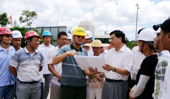8月5日,海南省副省长陆俊华一行到中国一冶集团承建的海南博鳌一龄生命养护中心项目施工现场调研指导工作。