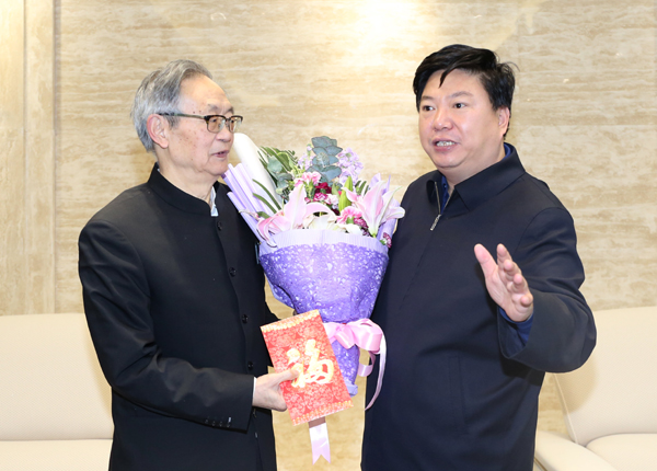 国文清首先代表新中国五矿及中冶集团慰问了于润沧、蒋继穆、王忠实等老专家、老同志,感谢他们长期以来为有色院的改革发展乃至中国有色工业的科技进步所做的重要贡献,并为他们送去了新春祝福。国文清介绍了新中国五矿及中冶集团2016年取得的成绩和未来的发展目标。他指出,中国五矿与中冶集团实施战略重组,目标是打造“中国第一、世界一流”金属矿业集团。重组以后,新中国五矿的总资产达到7500亿元,管理的金融资产达到7000亿元,在金属矿业领域体量是最大的。目前战略重组进展顺利,2016年,新中国五矿取得了较好的经营业绩。未来几年,新中国五矿将按照“三步走、两翻番”的奋斗目标继续前进。第一步,到2017年底,实现利润100亿元,比2016年翻一番,完成止血控亏、改组改造的过渡期任务;第二步,到2018年底,实现利润200亿元,比2017年再翻一番,完全具备国有资本投资公司功能;第三步,到2020年,新中国五矿在金属矿产品方面,钨、锑、铟、锗、铋保持世界第一,铜、镍、铅锌在国际上具有较强影响力和一定控制力,具备全球配置矿产资源能力和产供贸一体化能力,实现“中国第一、世界一流”中国金属矿业集团目标。中冶集团经营业绩继续保持增长。2016年,中冶集团营业收入稳中有升,实现利润稳步增长,带息负债继续下降。未来几年,中冶集团将按照“聚焦中冶主业,建设美好中冶”的目标继续前进,努力做“冶金建设国家队、基本建设主力军、新兴产业领跑者,长期坚持走高技术建设之路”。“建设美好中冶”的概念,在现阶段就是打造10万人左右的队伍,实现3000亿元的营业收入、100亿元的利润。他强调,事业发展要有动力,需要不断地培养人才。老专家、老同志是企业的宝贵财富,中冶集团有80多岁的院士,也需要有更年轻的院士。希望老专家、老同志进一步发挥传帮带的作用,为各大研究院培养更多的科技带头人,不断推进新中国五矿、中冶集团的事业向前发展。