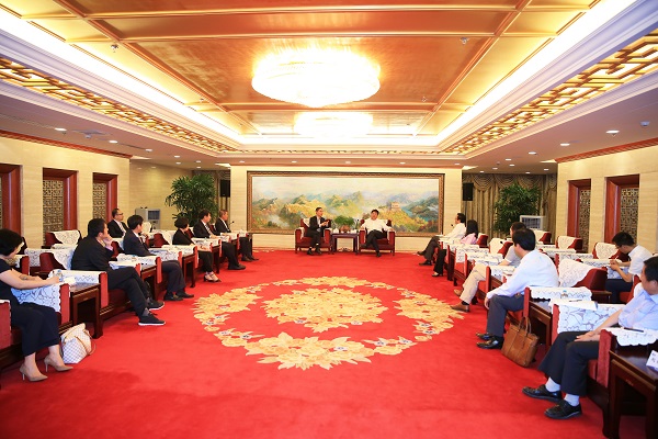 6月16日,中国五矿集团公司总经理、党组副书记,中冶集团董事长、党委书记国文清会见了来访的青山钢铁董事局主席项光达、德龙控股董事局主席丁立国一行,双方举行会谈,共同回顾友好的合作历程、展望未来的合作前景,并就加快推进印尼钢铁项目,进一步加强在工业园区建设、有色金属冶炼、交通基础设施等领域的合作深入交换了意见。