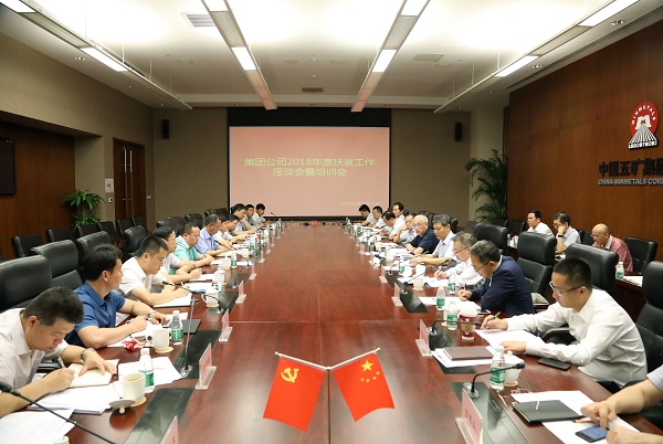 为深入学习习近平总书记扶贫开发重要战略思想,进一步贯彻落实中央、国资委党委精准扶贫、精准脱贫工作要求,总结交流定点扶贫工作开展情况并安排部署下一步重点工作,7月12日至13日,中国五矿集团有限公司在京召开2018年度扶贫工作座谈会暨培训会。会议期间,中国五矿董事长、党组书记,扶贫工作领导小组组长唐复平亲切会见并一一慰问与会的各位挂职干部,与他们座谈,听取工作汇报和建议,并做工作指示。中国五矿党组副书记、副总经理,扶贫工作领导小组副组长董明俊主持座谈会。