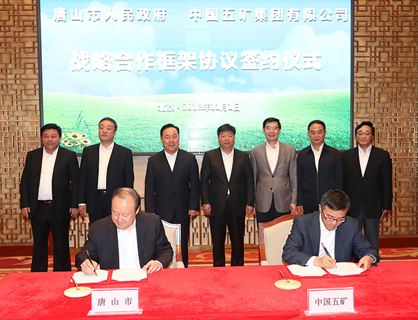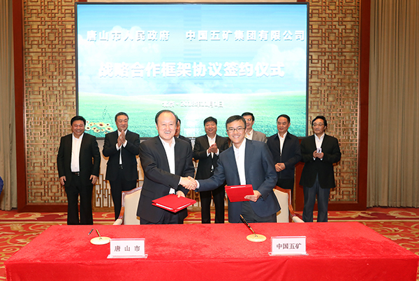 11月1日,中国五矿集团有限公司与唐山市人民政府战略合作框架协议签约仪式在北京五矿广场举行。中国五矿总经理、党组副书记、中冶集团董事长国文清与河北省委常委、唐山市委书记王浩共同见证签约,并就双方进一步加强合作进行了深入探讨与交流。