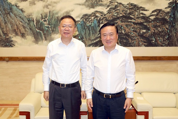 中国五矿党组书记、董事长翁祖亮9月6日会见来访的中国铁道建筑集团党委书记、董事长汪建平一行,就进一步加强合作、推进项目对接进行深入交流。