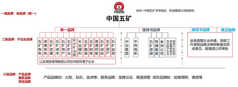 2022年,中国五矿重新梳理内部子企业品牌,建立了中国五矿三级品牌架构,实现品牌组合价值最大化。