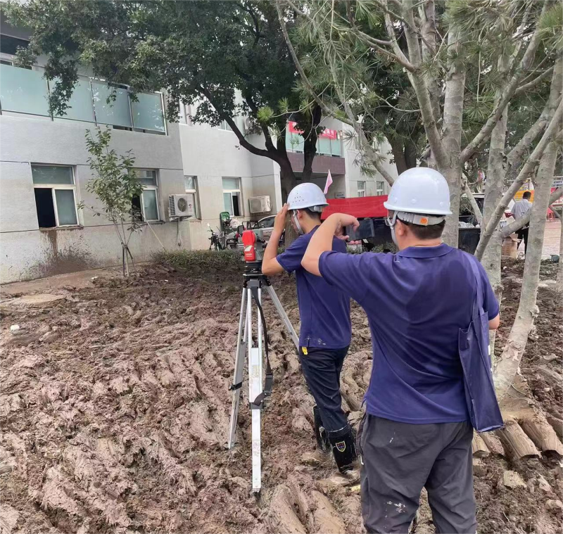 中冶建研院党员突击队员进行房屋倾斜检测