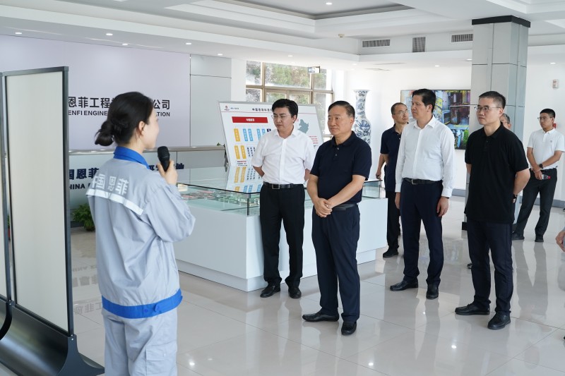 翁祖亮先后参观了研发基地办公楼展厅,调研了数字仿真实验室、新材料实验室、充填试验室、燃料电池实验室、湿法扩试实验室、压力浸出实验室、火法扩试车间、矿物综合加工试验区、土壤修复生态温室等实验平台,深入了解中国恩菲科技创新体系及偃师研发基地平台建设情况,重点听取复杂锂资源提取、钪基功能材料、钒液储能科创项目等在研项目的进展情况汇报。