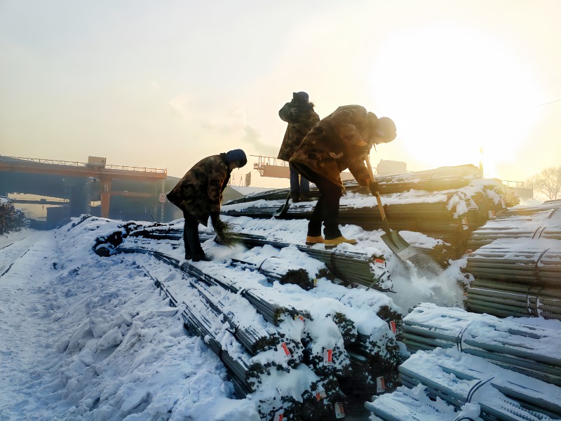 五矿钢铁哈尔滨公司员工清扫积雪、保障货物安全