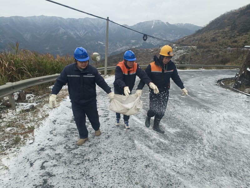 香炉山钨业员工在矿山公路撒盐除雪