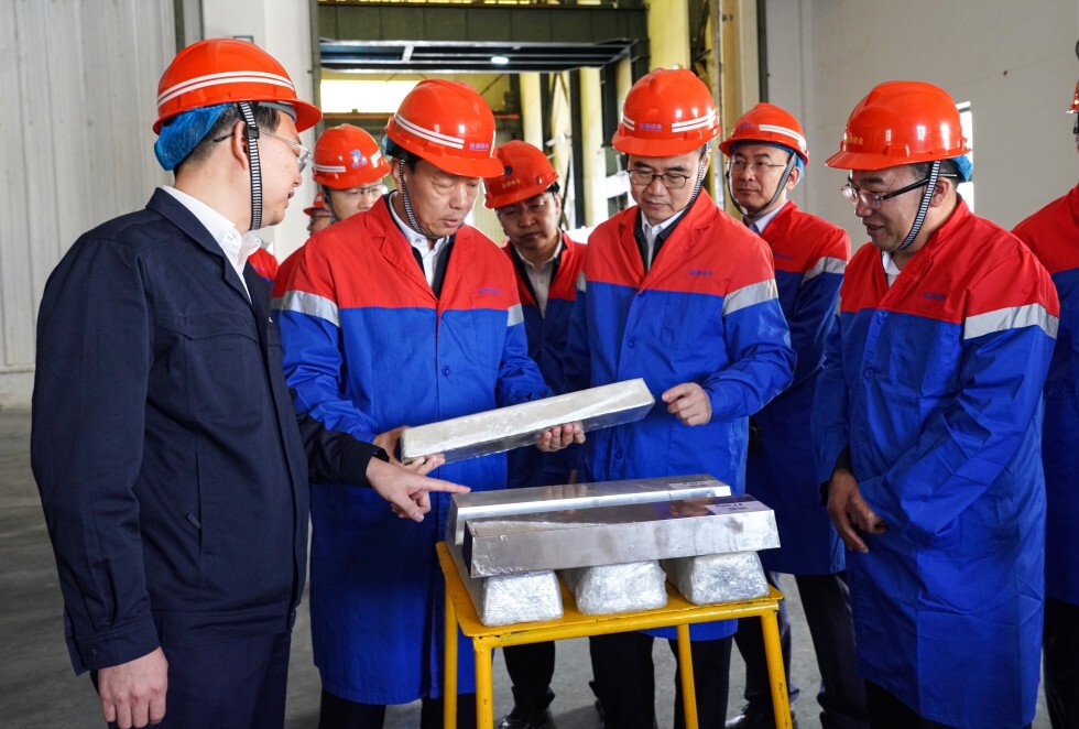 陈得信一行调研金属镁一体化项目察看金属镁锭