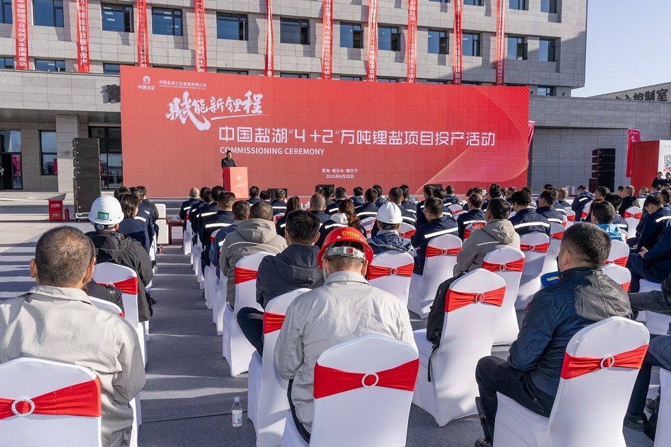 陈得信感谢青海省委省政府及各有关部门对项目建设给予的大力指导支持。他强调,中国盐湖“4+2”万吨锂盐项目建成投产,是地企合作深入贯彻落实习近平总书记关于建设世界级盐湖产业基地重要指示的重要成果,是中国盐湖引领世界盐湖产业技术创新和生产工艺提升的鲜明例证,是中国五矿集金属矿业全产业链一体化优势支持中国盐湖成为新能源产业链链长的突出成就。此次投产的“4+2”万吨锂盐项目采用全球领先技术,将全面提升我国锂资源的保供稳链能力和技术装备水平,进一步增强我国锂电产业链的自主可控能力,为青海省构建绿色低碳循环经济体系提供坚实保障。希望中国盐湖以此为新的起点,努力将项目打造成为引领全球盐湖产业发展的示范项目、品牌项目、标杆项目。展望未来,中国五矿愿与青海省继续加强合作,并肩服务“国之大者”、一道担当“国之重任”,共同谱写地企协同发展新篇章。