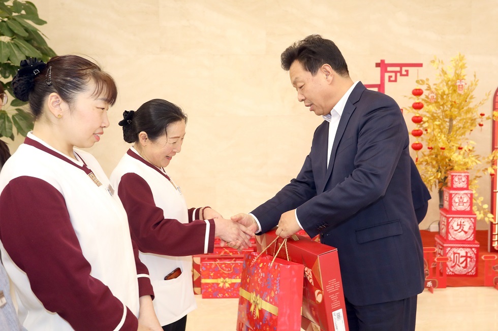 新春假期临近,中国五矿党组书记、董事长陈得信在五矿广场走访慰问驻中国五矿纪检监察组、总部部门、五矿资本、五矿地产、五矿勘查、五矿资产、五矿创投干部职工及五矿资产和五矿物业的大厦运维服务保障人员,向大家致以新春的美好祝福和诚挚问候,并检查节前值班值守工作。中国五矿党组副书记、董事王杰之陪同有关活动。