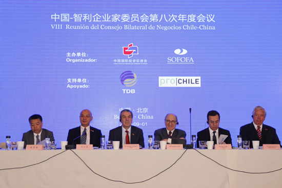 On September 1, the opening ceremony of the “8th Annual Meeting of China-Chile Business Council (CCBC)” & “Chile Week 2016” was held in Beijing. The meeting was organized jointly by the China Council for International Investment Promotion (CCIIP) and the Sociedad de Fomento Fabril (SOFOFA). The meeting was attended and presided over jointly by He Wenbo, President of the Chinese Section of CCBC and Chairman of Minmetals, and Francisco Silva, President of the Chilean Section of CCBC and President of Banco Security. Eduardo Frei, former President of the Republic of Chile and Chilean Ambassador Extraordinary and Plenipotentiary to Asia Pacific, and Tong Daochi, Assistant Minister of the Ministry of Commerce of the People’s Republic of China (MOFCOM), were also present at the meeting.