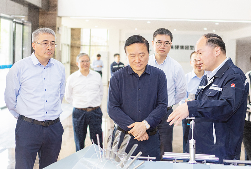 In the Section Material Branch of Zhuzhou Cemented Carbide Group Co., Ltd., Weng Zuliang learned in detail about the development of bar profiles and the replacement of imported products, and carefully inquired about product parameters, categories, and market share. At the exhibition hall, he listened to the introduction to the company’s development history, progress in scientific & technological innovation, development of the National Key Laboratory of Cemented Carbide, production process of the whole industry chain, and overview of products.