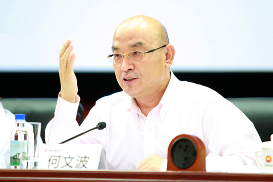 图为何文波作重要讲话